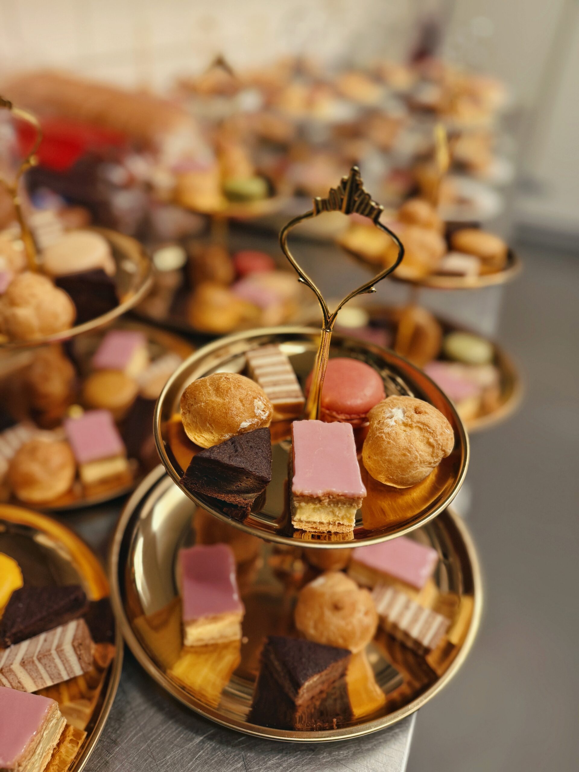 Ontvangst – Koffie/thee en op tafel etagères met zoetigheden